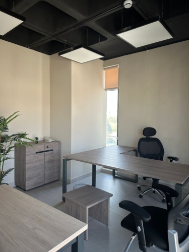 A spacious and versatile private office designed to accommodate 2 to 3 people comfortably. With 20 sqm of well-planned space, Office 9 provides a professional environment ideal for small teams or growing businesses. Featuring modern desks, ergonomic seating, and access to natural light, it combines comfort with functionality. Tenants also benefit from all Al Daoud Business Centre amenities, including high-speed internet, printing services, coffee corner, reception support, and access to meeting rooms